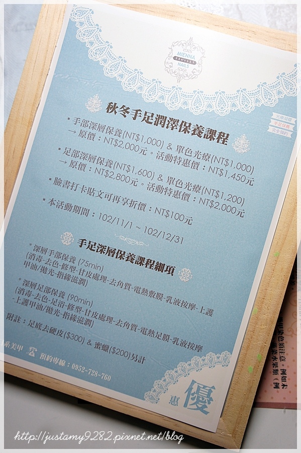 店裡目前推出了❖秋冬手足潤澤保養課程❖的優惠