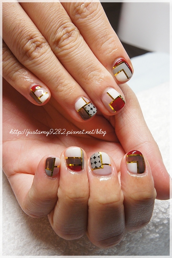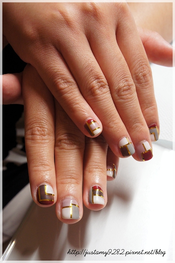 登愣~ 不規則的幾何拼接光療完成!!!