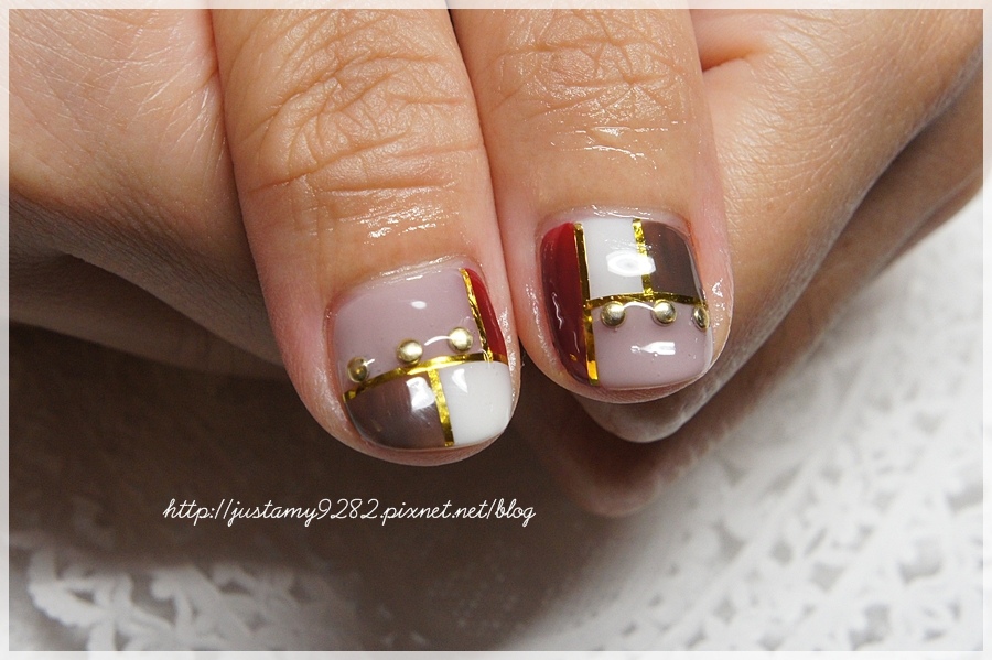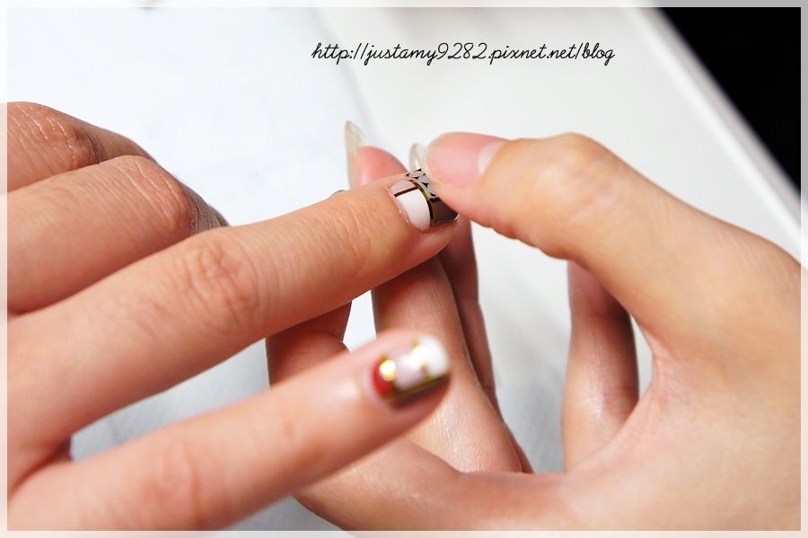 最後把每指的拼接光療都貼上金邊